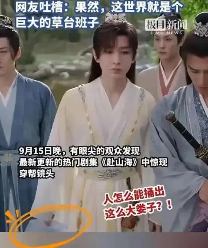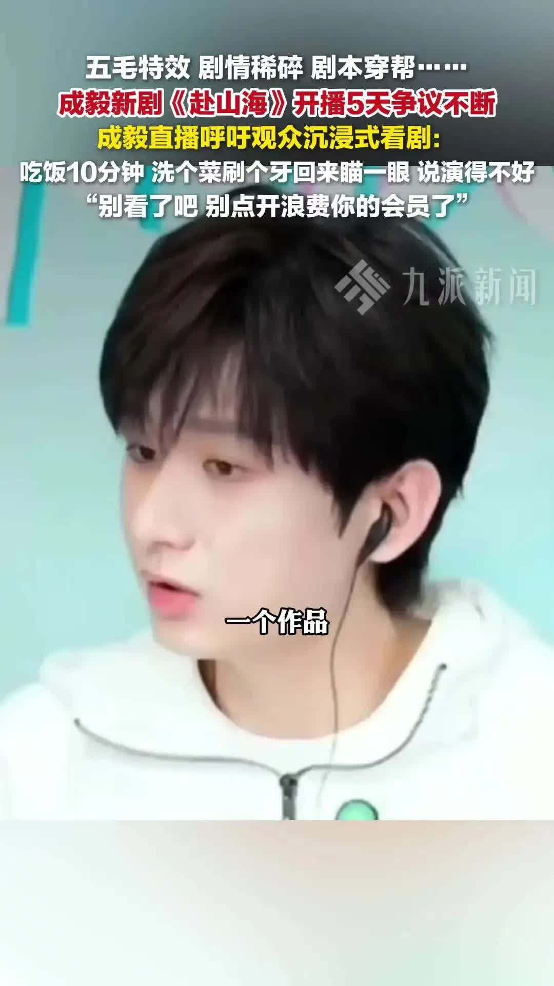 毕竟《赴山海》从开机到开播,经历11个月赶工,导致穿帮频发、绿幕抠图失真;主演成毅37岁演少年,有违和感,他台词“含痰式发音”,观众需要依赖字幕,这都是大问题。
