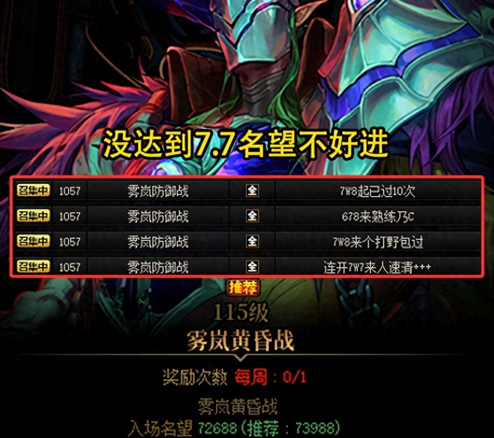 虽说团本标注的入场名望为72688,但在野团环境下,名望没达到7.7以上,根本就不好进,以至于很多玩家都被劝退了。