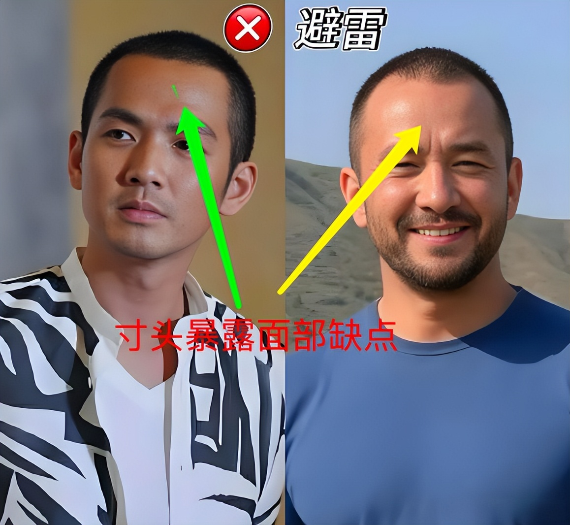 ① 寸头,容易看出发际线高低,导致看起来显得苍老