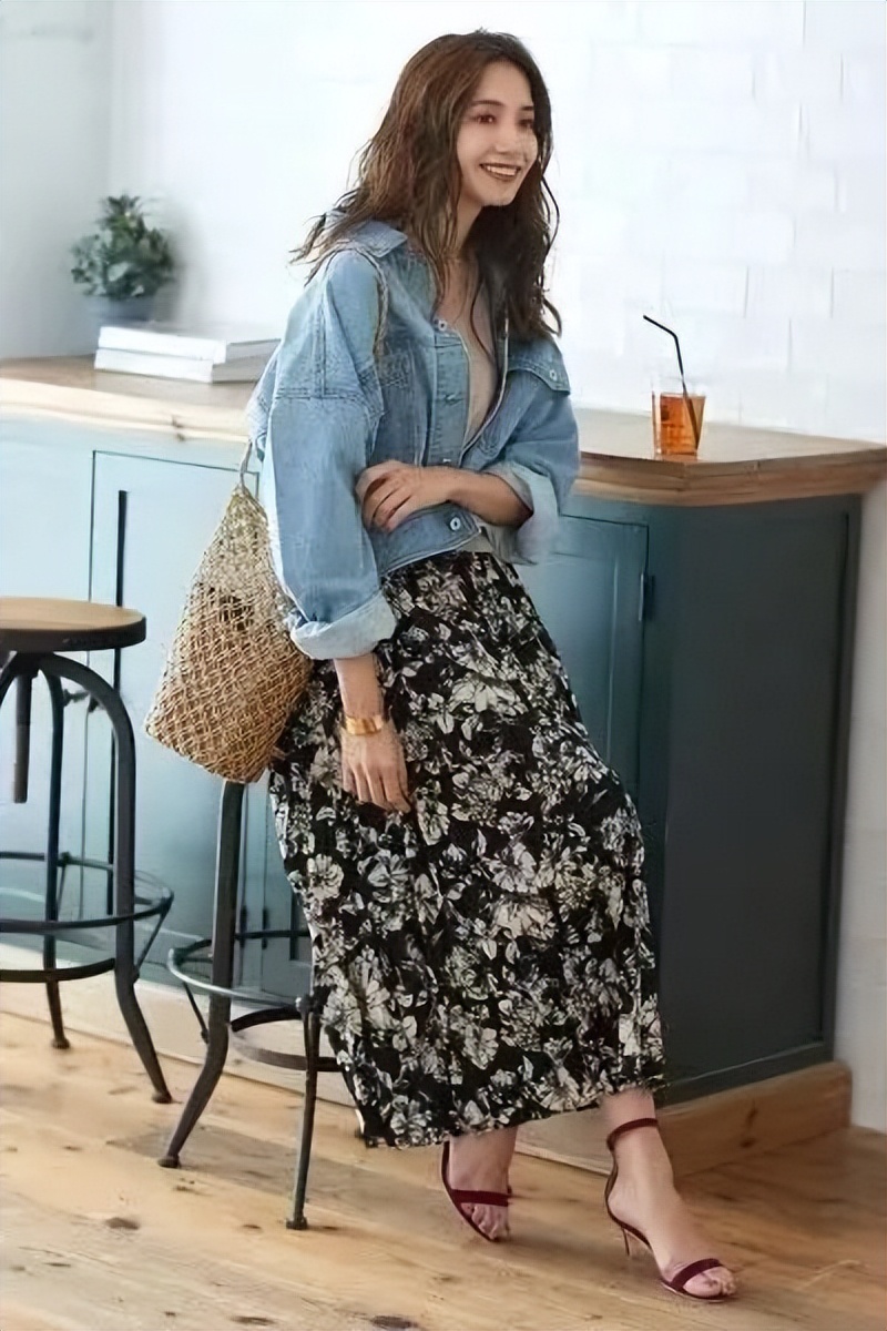牛仔的酷帅,遇上印花裙的浪漫,一刚一柔,彼此风格互补,将帅气与温柔集于一身,是非常有风格的混搭。