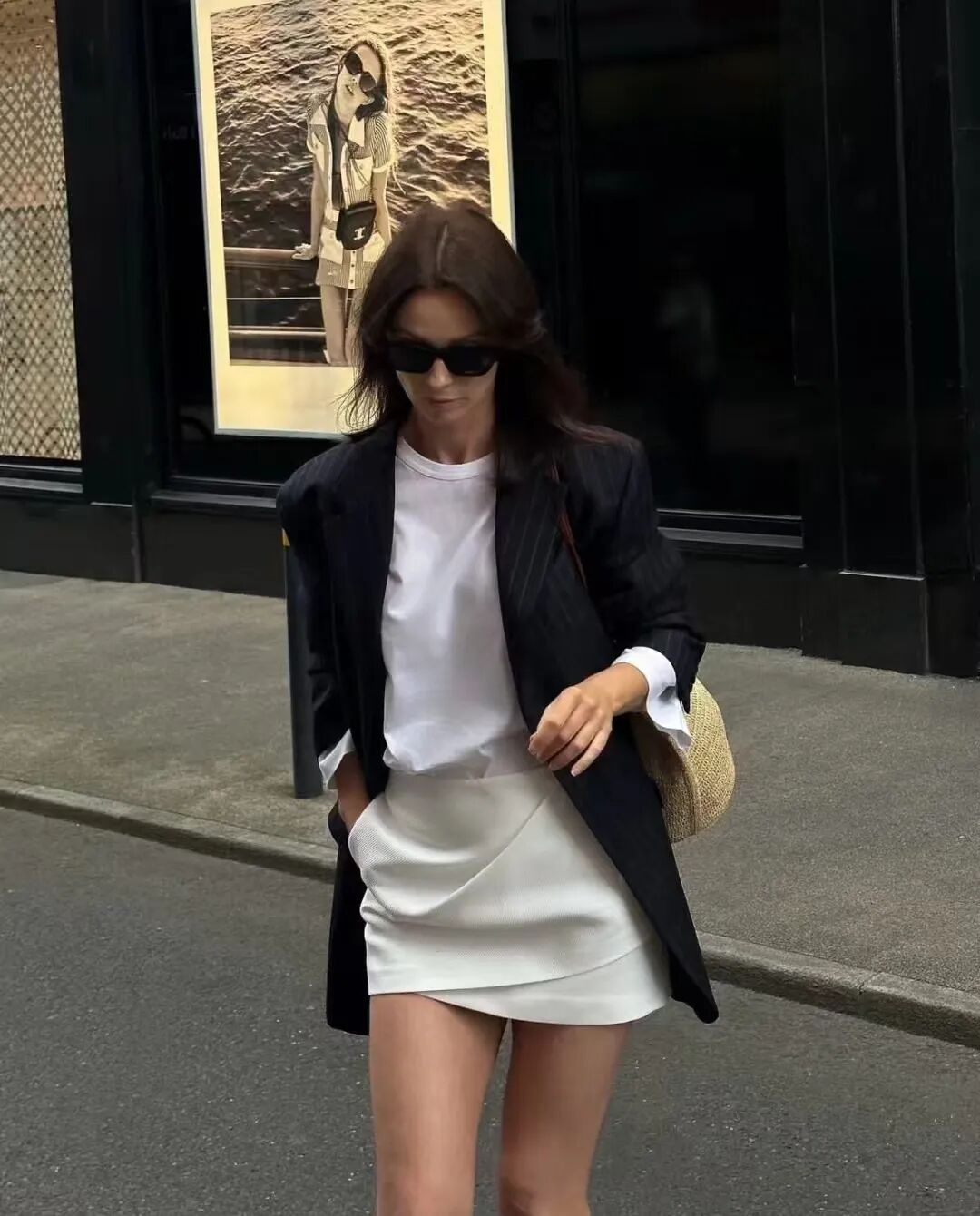 在初秋,也可以用短裙来搭配西装外套,打造更轻盈利落的西装look。