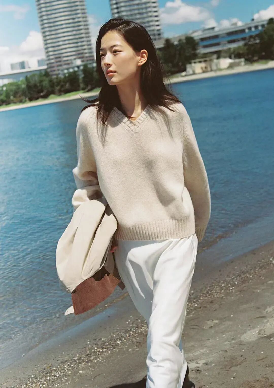 接着是针织开衫搭配白裤子。针织开衫简直就是秋天温柔的代名词。选择一件浅色系的针织开衫,比如米白色、淡粉色,往身上一搭,整个人瞬间就变得柔和起来。搭配白裤子,就像是给温柔加了双倍buff。你可以把开衫随意地披在肩上,也可以系上扣子,打造不同的风格。配上一双小皮鞋,走在街上,那回头率杠杠的。这搭配就像是给你披上了一层温柔的保护罩,让你在秋天也能美美哒。