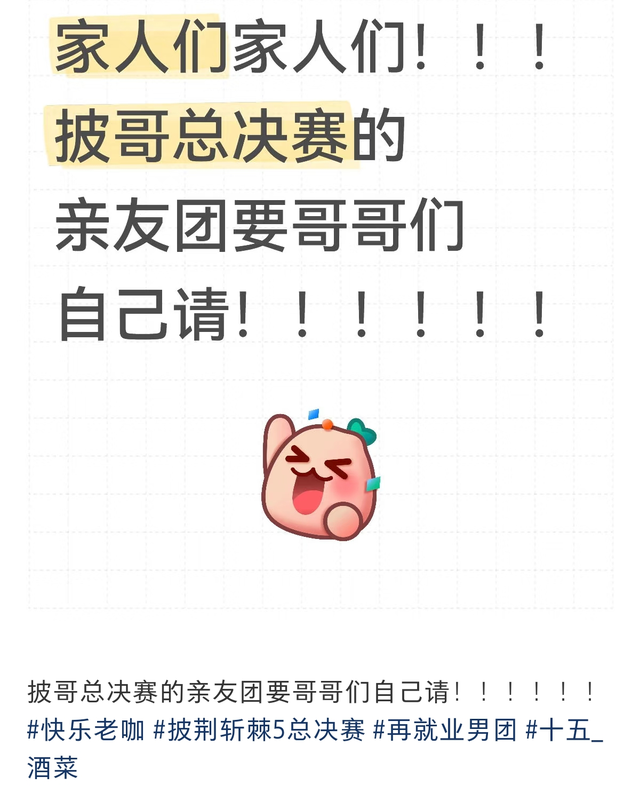 《披荆斩棘5》第四轮舞台公演已经播出,而第五轮舞台公演录制完成,也就是说,本季节目即将迎来总决赛,每季总决赛都会有“亲友团”来助阵,根据知情人士透露,本季的亲友团哥哥们可以自行邀请,那么陈楚生真的会来录制《披荆斩棘5》总决赛吗?但冠军花落谁家,结果已经很明显了,各位读者,你们怎么看呢?
