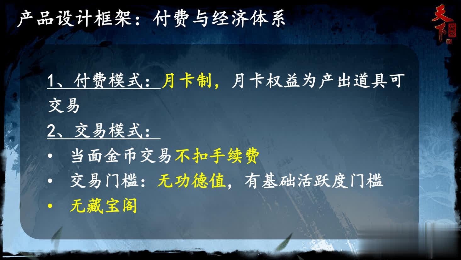 《天下贰·经典版》采用月卡制,可当面金币交易