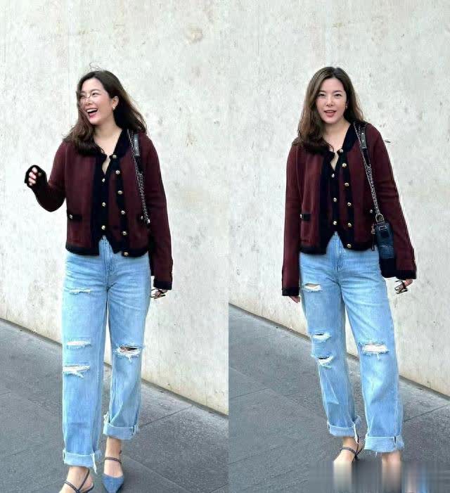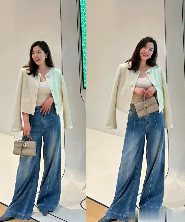 牛仔裤蕴含的风格是清爽的、不具有任何油腻的感觉,因此可以起到一定的减龄效果。