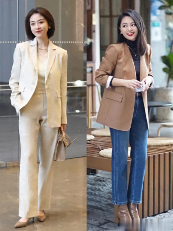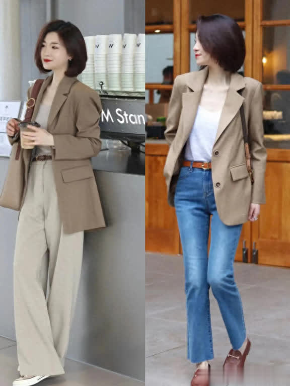 一件经典的浅卡其色或者是浅棕色西装外套,看着也比较利落有型,上班通勤的时候去穿也不会觉得花哨。