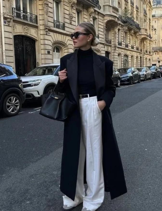梨形身材最大的特点就是下身胖,所以在挑选外套时,建议优先选择长款h型的大衣,或者是直筒廓形能遮住臀部和大腿的款式,搭配时遵循内紧外松的法则,这样就能很显瘦好看。