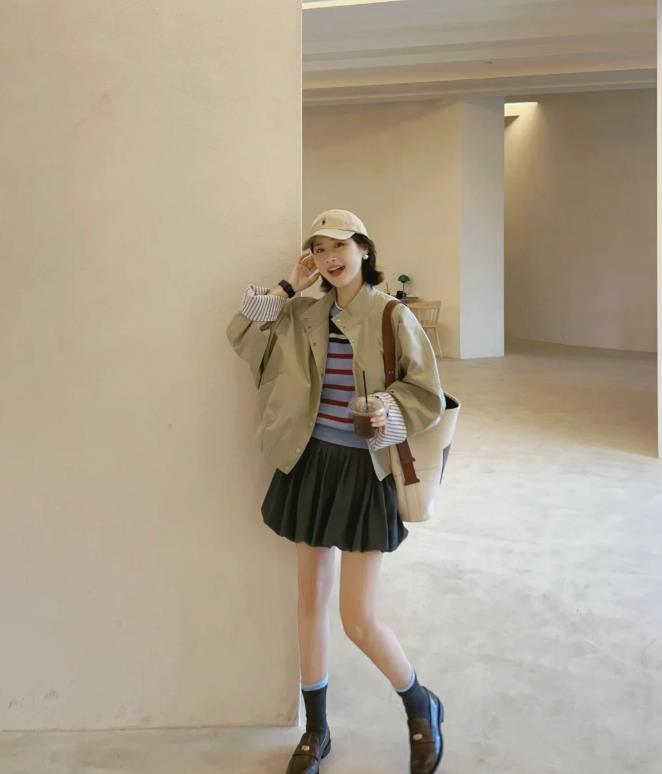 对于小个子女生而言,如何显高永远都是最重要的问题,所以选择外套时,一定要抓住“显高”的核心,短款风衣,或者是夹克外套,都能大程度上拉长身材比例,搭配高腰裙子或裤子,利用上短下长的搭配方式,轻松实现黄金比例。