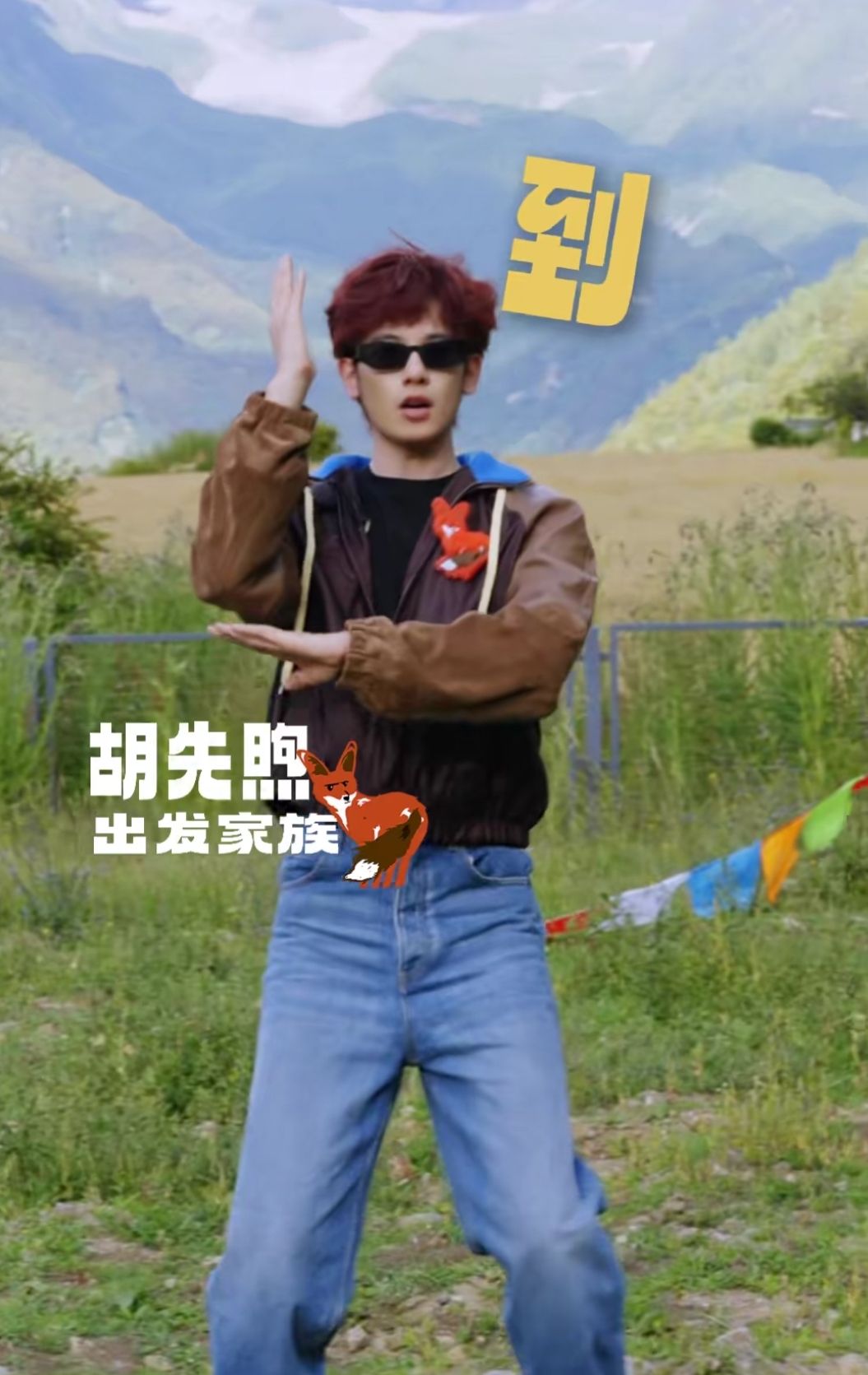 第四个露面的胡先煦也是乖乖的,端着标准的学生上课举手的姿势。不过整套造型很有复古感,夹克上衣配牛仔裤,也是越来越帅气了。