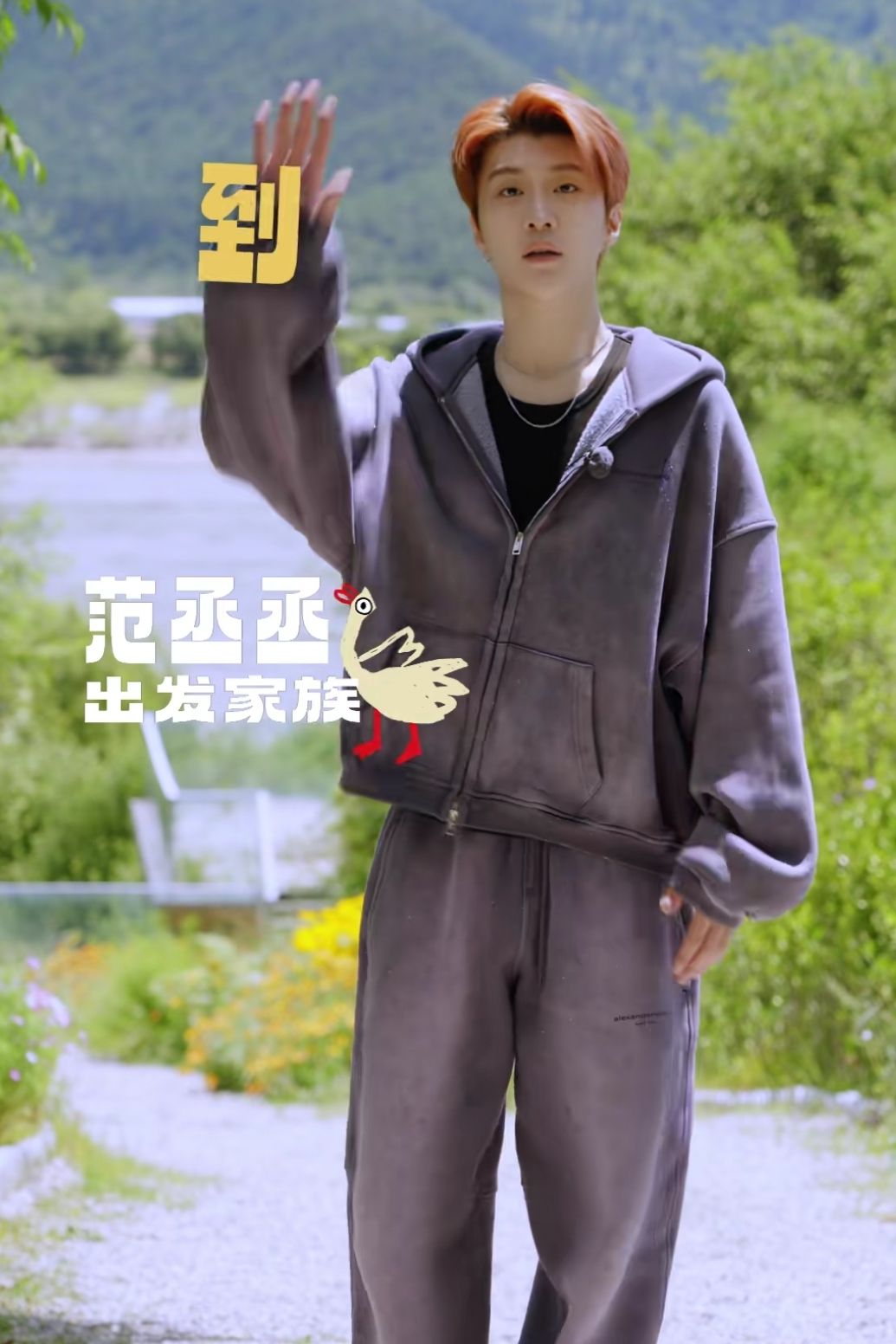 第六个出现的是回归成员范丞丞,一身灰色卫衣,配上亮眼的红发,标准的男团既视感,只不过范丞丞看起来没那么活泼了。
