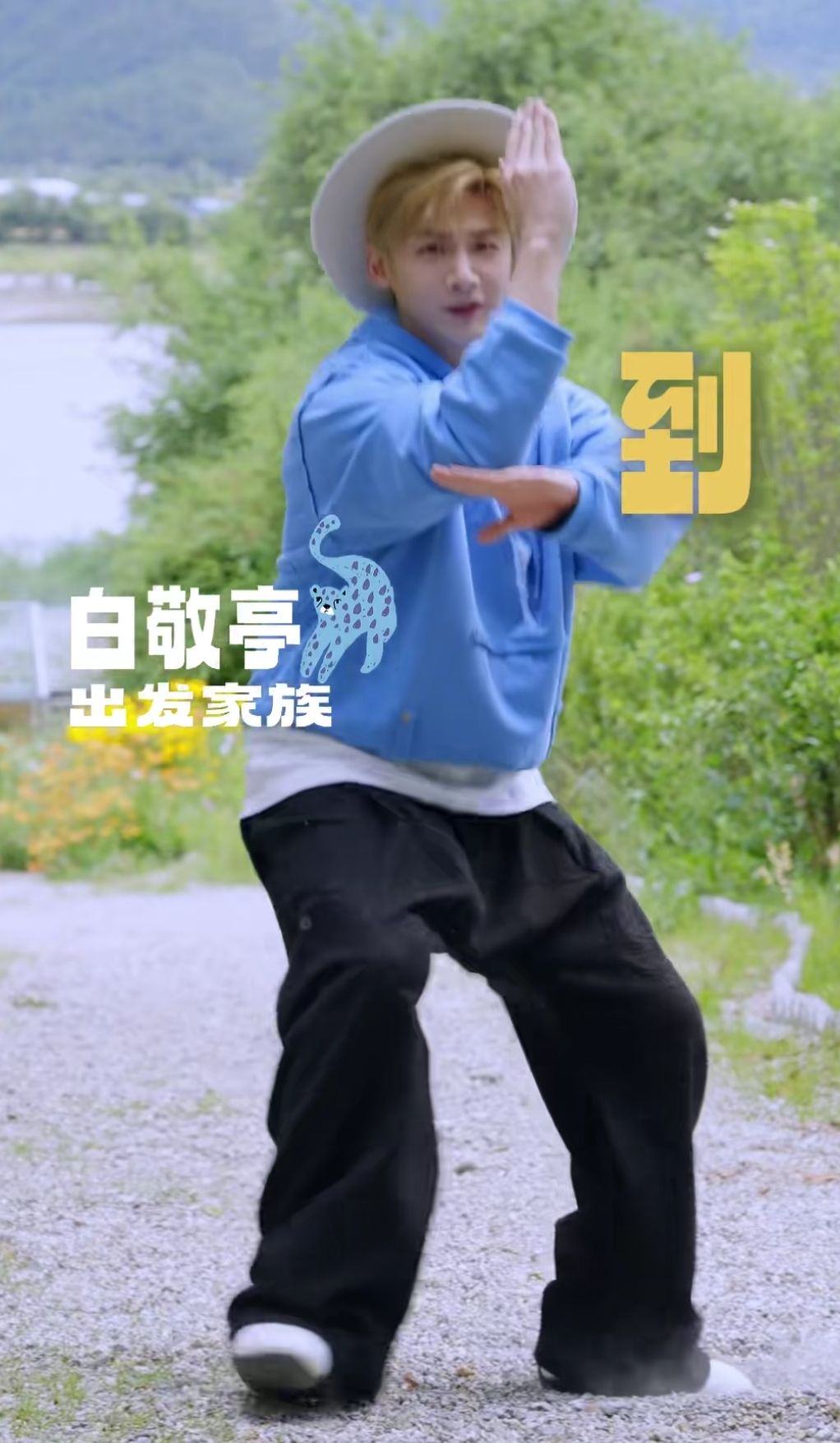 第一个跳出来答到的是白敬亭,蓝色卫衣黑色休闲裤,还是那个时尚酷boy,就是这动作有点搞笑,脸和性格多少有点不对版的感觉。