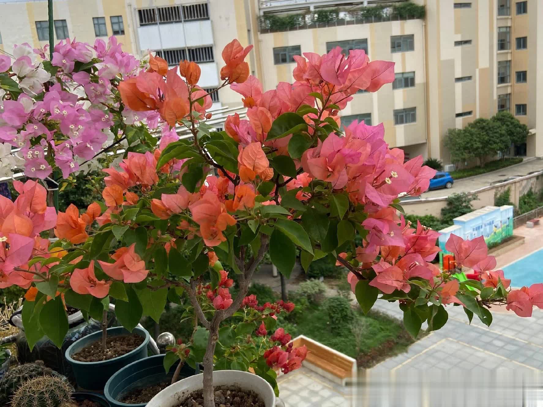 那些刚从苗商手里接回来的三角梅,往往丑得像几根“光杆司令”,杵在盆里,了无生趣。头几个月,我几乎每天都要俯身端详,心里跟猫抓似的:你怎么还不长?怎么还不开?