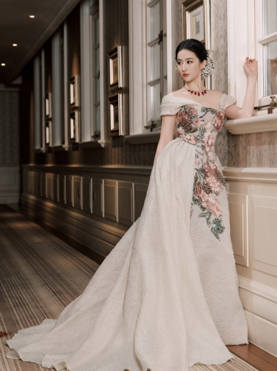 至于钟楚曦,显然更有审美,这套法式油画风的礼服与她明艳靓丽的外形高度契合。