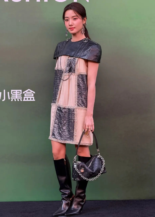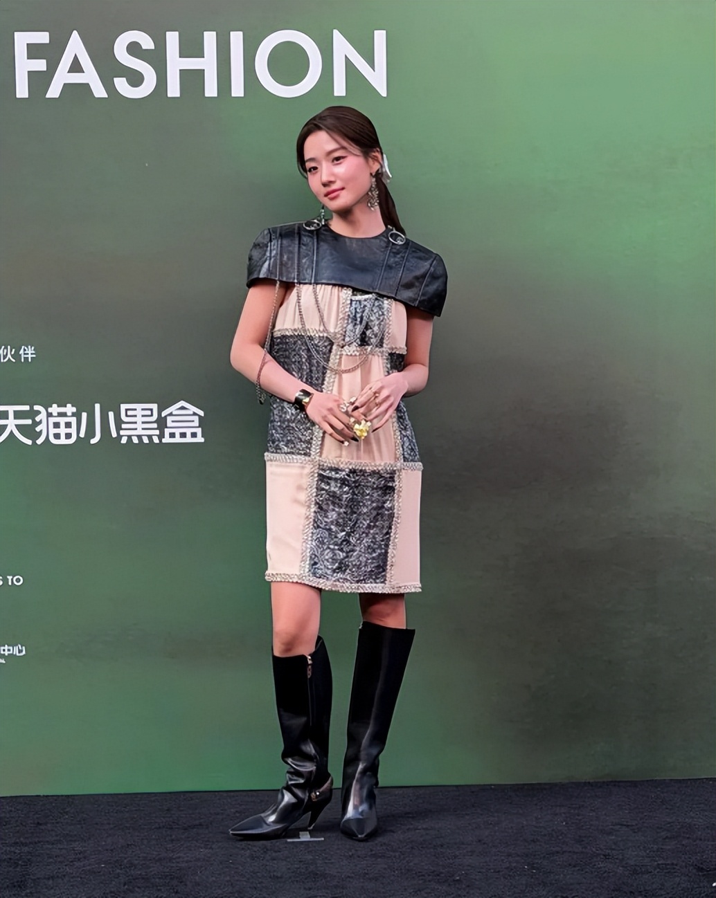 下半身的长筒皮靴,将她的腿部线条挡得死死的,看着就更矮小了。
