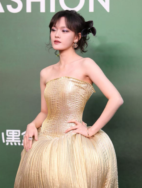 这不,在红毯上的她身穿金色礼服,款式设计很有动态的美感,还能秀出漂亮修长的肩颈。