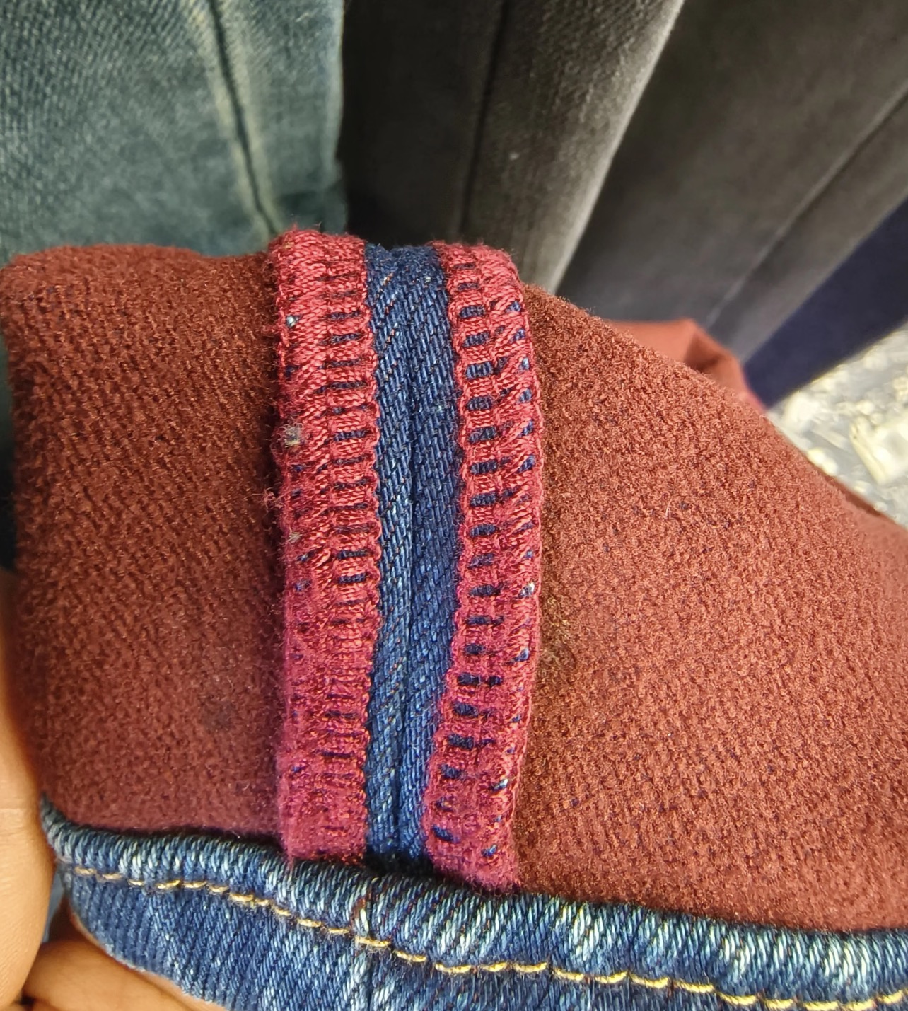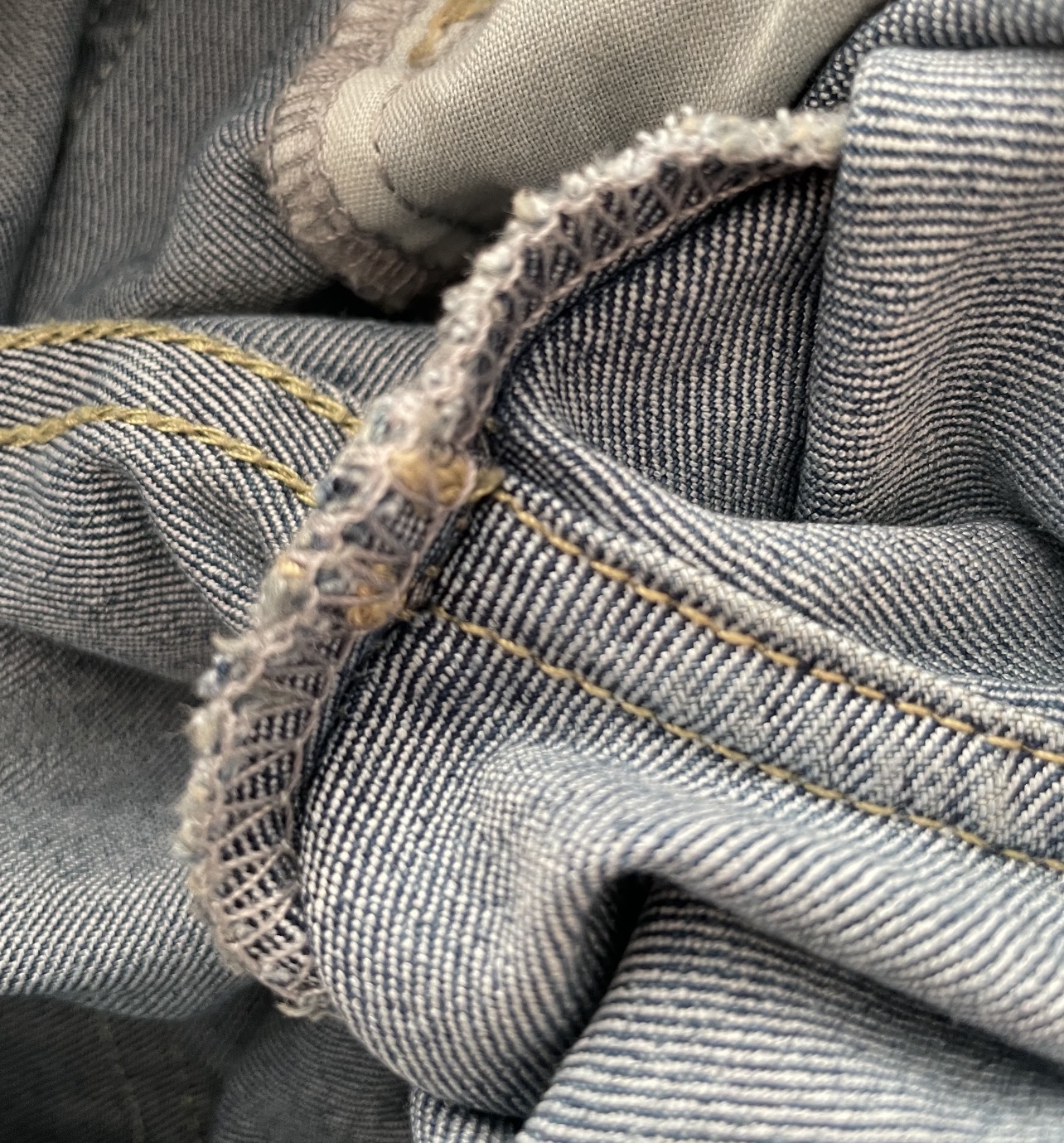 晚上回家翻过来看,发现裤裆内侧是凸起来的,而且很粗糙,上网一查才知道这叫锁边,可以说是最差的工……我都不想叫它工艺,它有艺吗它!