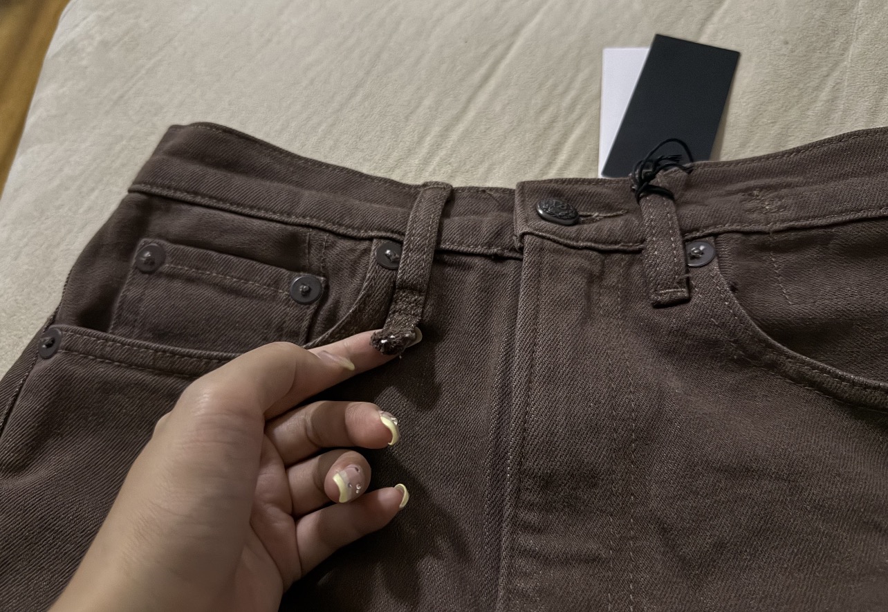 像这种裤袢没有打枣的,就容易开线,皮带穿着穿着就会发现一个裤袢“离家出走”了!