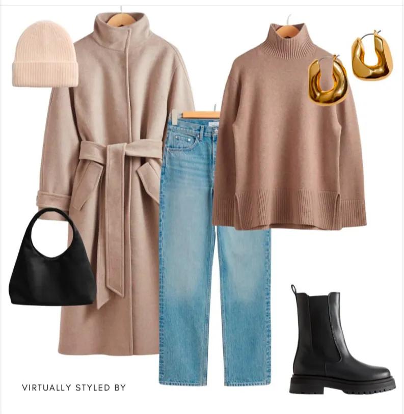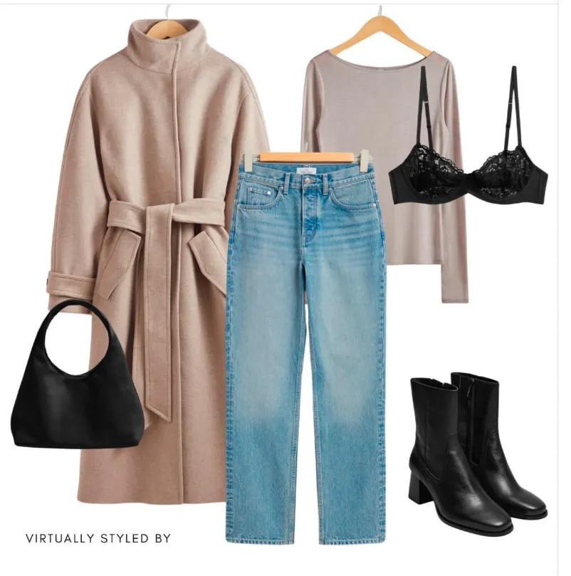 大家很多时候都忽略打底衫的优点,用好面料再搭配合身的剪裁,配合燕麦咖色大衣,就能直接搭配牛仔裤完成一身穿搭,简约实用。