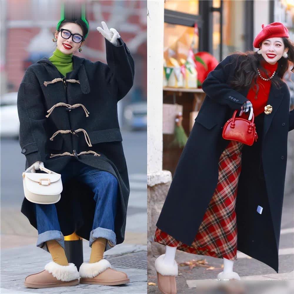 全腿都是深色的人可以选择浅色毛毛鞋搭配,不仅不会显得突兀,还能起到提亮整体搭配的作用,给别人一种尽管整体色全深色但是你很会搭配的感觉,而且浅色保暖毛毛鞋显得清新可爱,更好地为自己减龄。