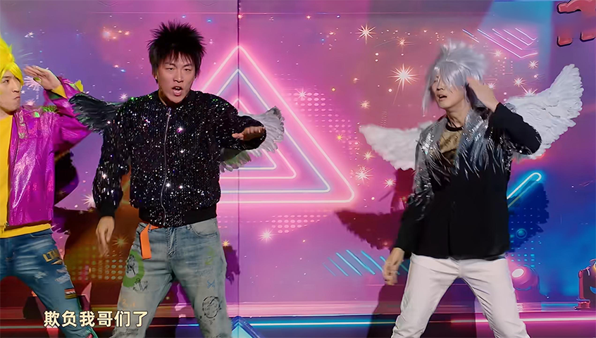 但你发现没有?它走的,就是春晚那样的路线挺适合大舞台的,但是不太有趣,道具、OK绷、扣组合名这类巧思,反而显现出创作者在求稳和求新之间的摇摆不定。