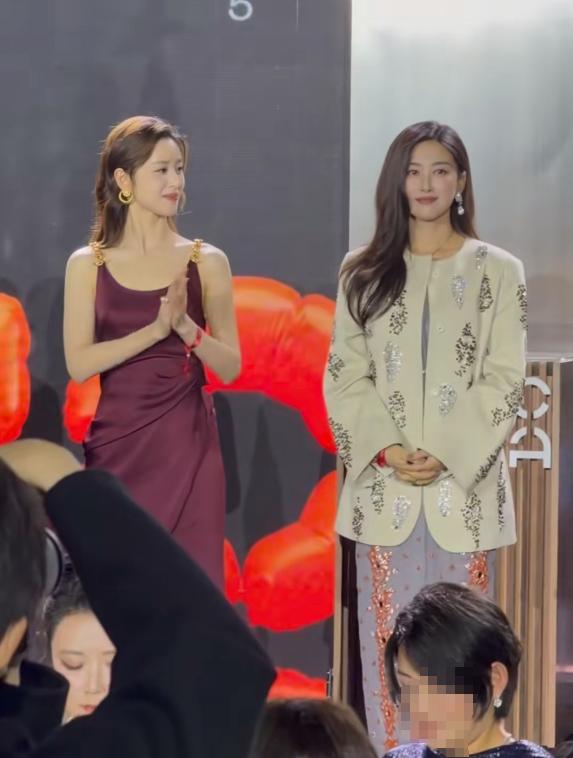 参加晚宴的还有演员朱珠,两人一个明艳一个优雅,相处的也十分融洽。
