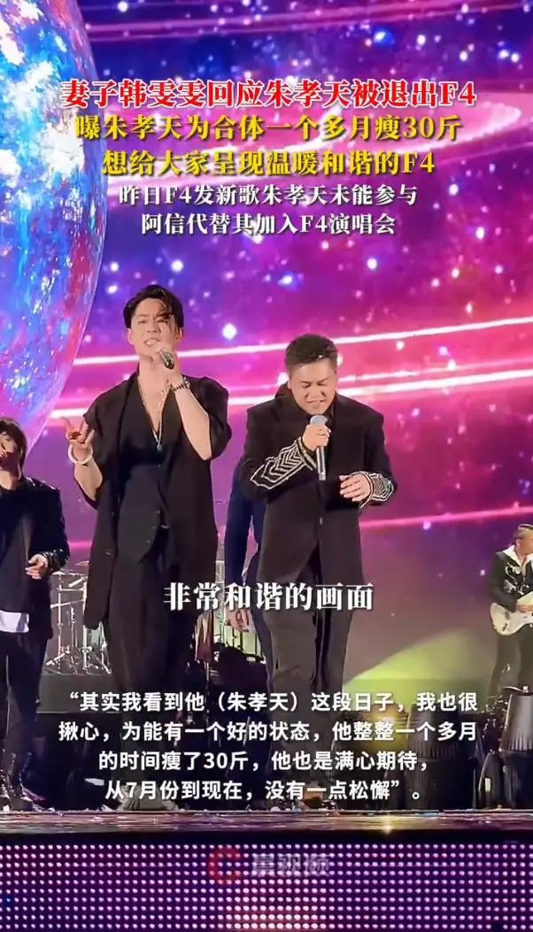 一则新歌发布,瞬间炸翻了无数“回忆杀”粉丝的青春滤镜。12月5日,F4新歌《恒星不忘Forever Forever》上线,演唱者名单却赫然变成了言承旭、吴建豪、周渝民和五月天阿信。原成员朱孝天不仅名字消失,连新歌宣传画面中,他的头像都被技术性裁剪抹去,被外界解读为遭团体实质“除名”。