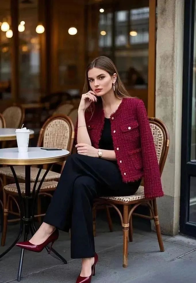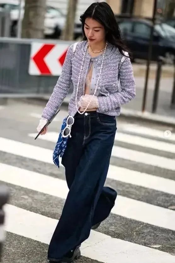 不妨尝试一下“小香风+阔腿裤”的组合,