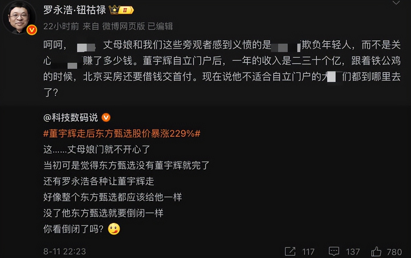 于东来不忍了!撕下罗永浩体面,董宇辉出了口窝囊气