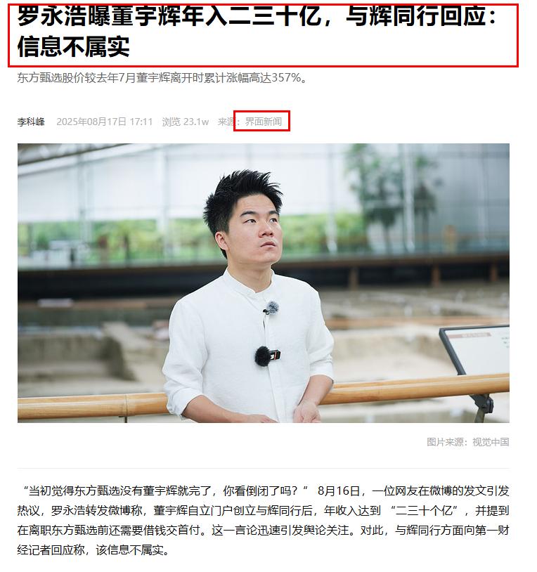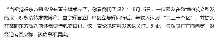 他曾在网上发文称董宇辉自立门户后,每年能拿到高达二三十个亿的收入。
