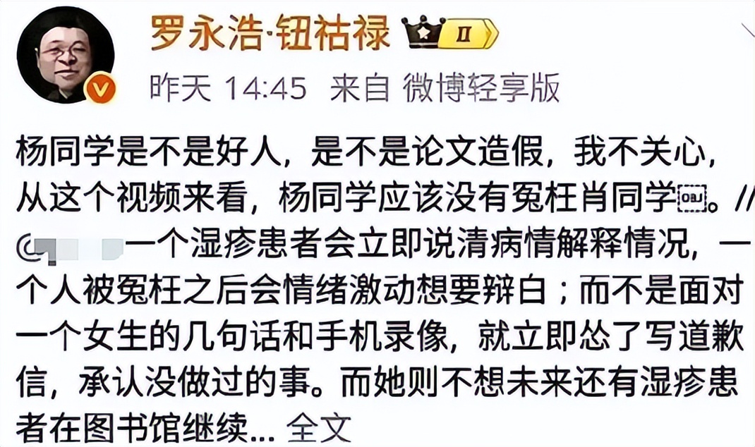 在这一时刻,罗永浩却出面表示“学姐”的指控站在她的角度是有道理的。