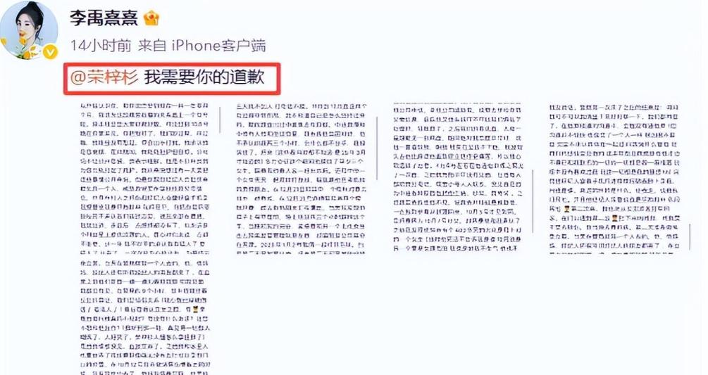 10月中旬,中戏师姐李禹熹甩出42页聊天记录、转账记录、验伤报告,实锤荣梓杉“恋爱期间同时撩3个女生”: