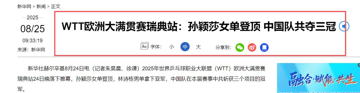 8月25日,2025WTT欧洲大满贯瑞典站落下帷幕。