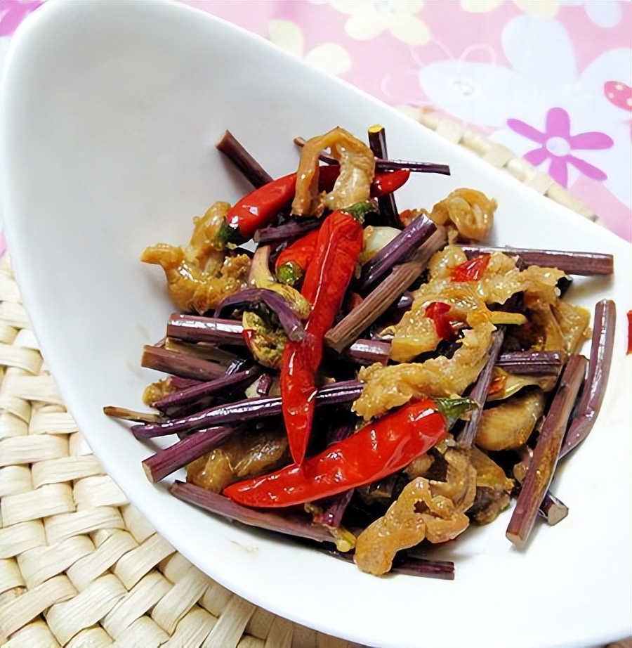 材料:蕨菜200克,鸡脯肉100克、干淀粉150克。精盐、味精、料酒、酱油、葱丝、姜丝各适量。