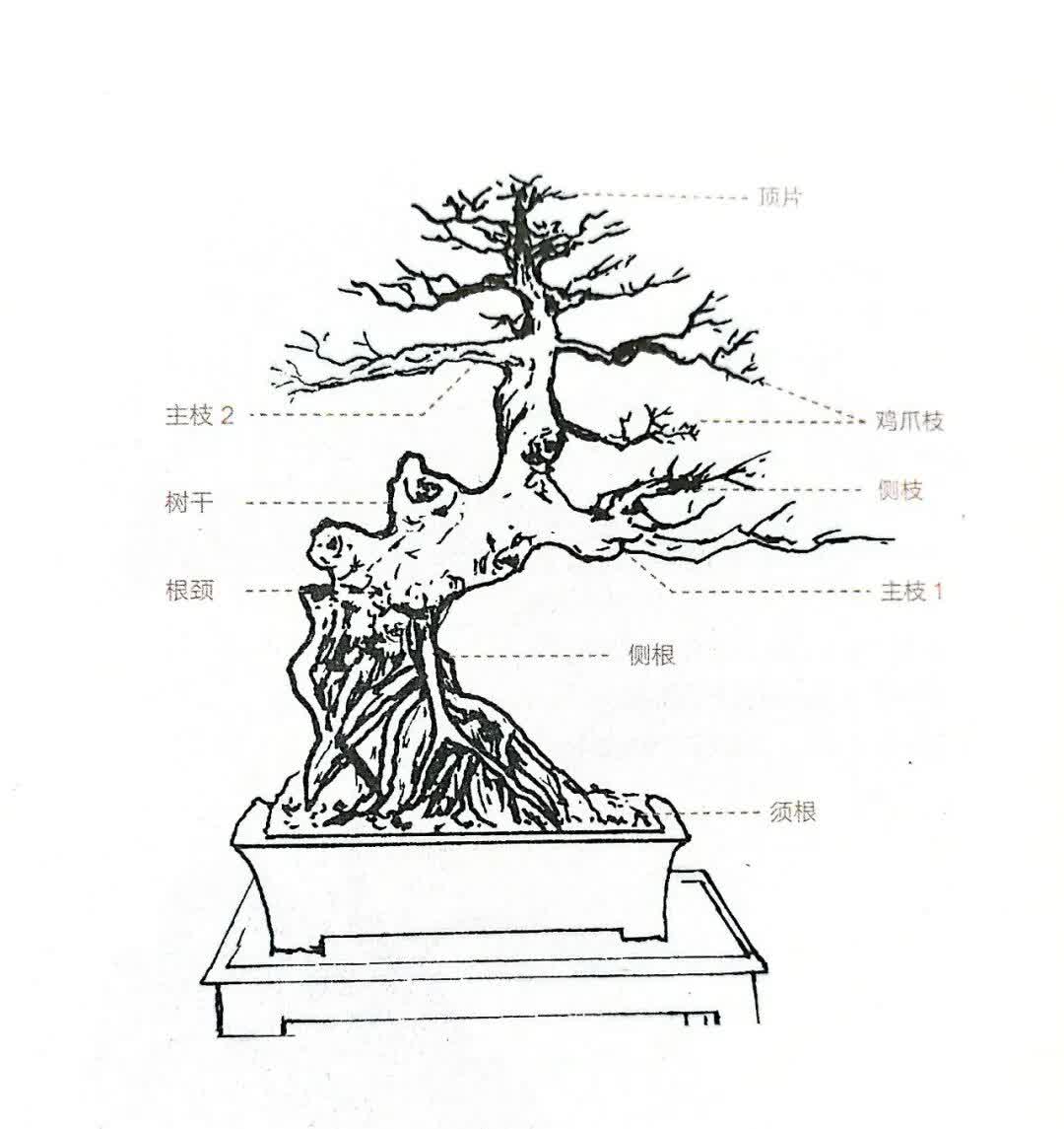 你看,一盆小小的盆景树,从根到顶,每一部分都有自己的名字和作用,就像一个分工明确的“小家庭”,少了哪一部分都不行。