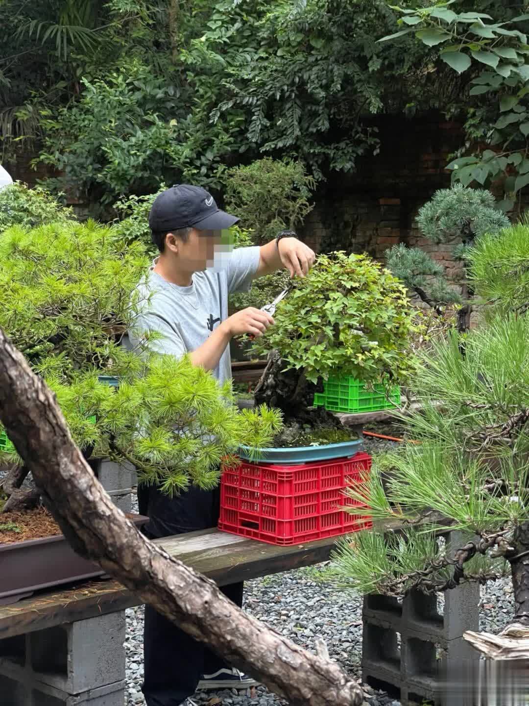 枝叶,就像给盆景搭好的“绿伞”,有的枝片饱满圆润,有的稀疏灵动,盆景的造型好不好看,枝片的搭配可是关键。