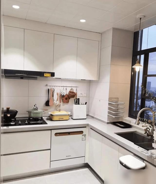U型厨房塞满锅碗瓢盆,转身就能炒菜盛饭,动线顺得像溜冰。