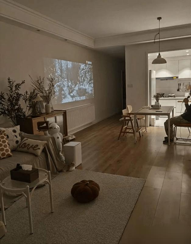 餐厅墙面当投影幕布,边吃饭边追剧,比砸钱搞岩板背景墙聪明多了。
