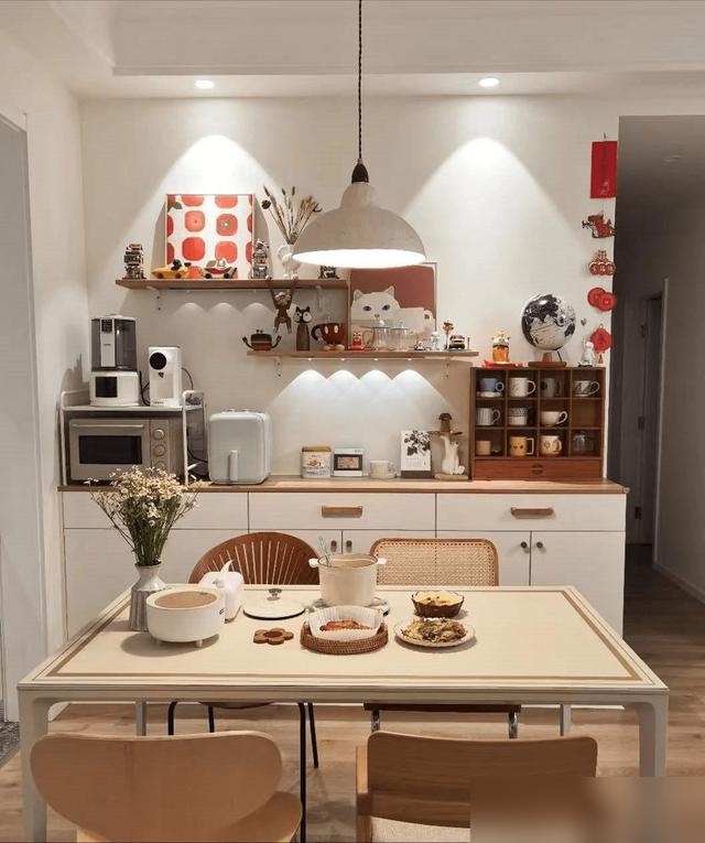 家的底色干净了,生活痕迹都是风景——咖啡机飘香,绿植冒新芽,餐桌留着早餐的面包屑。