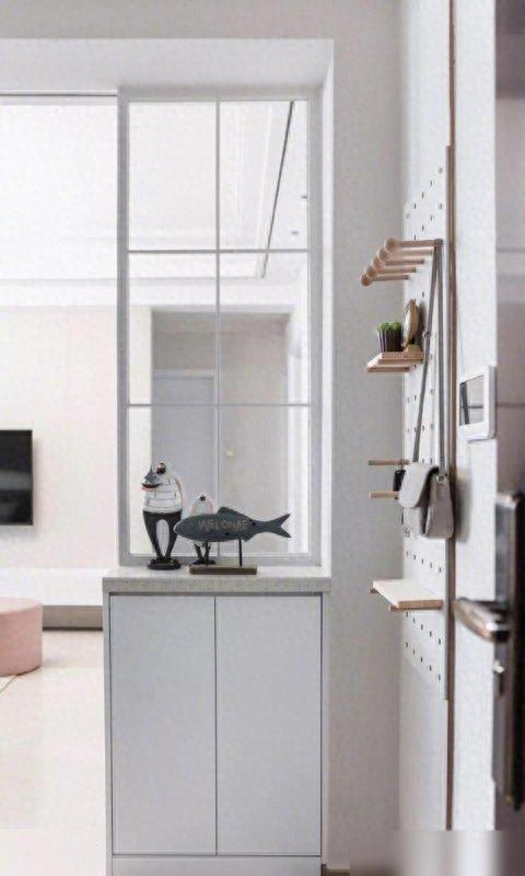 比如次卧的小梳妆台,既当化妆桌又当床头柜,省了空间还实用;入户的半高鞋柜+玻璃隔断,既挡了隐私又能放鞋子——换做是你,会不会把次卧阳台改成工作角?
