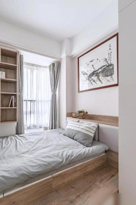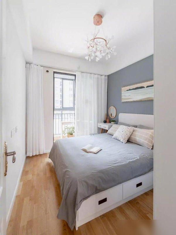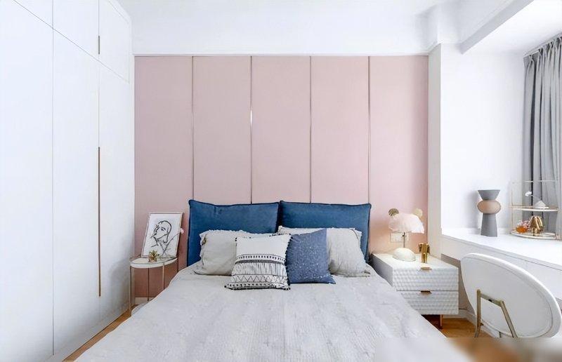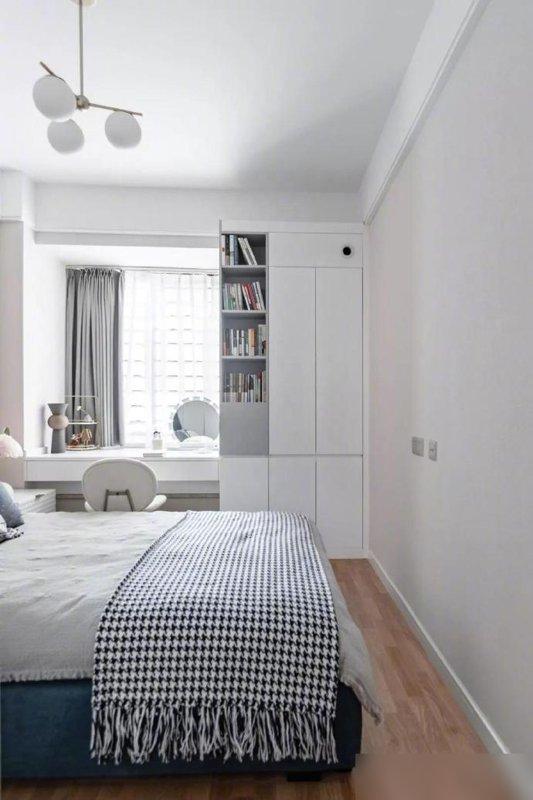 最妙的是“藏”和“露”的平衡。比如入户的洞洞板,挂钥匙、雨伞比玄关柜灵活;榻榻米房的开放格,摆点相框、书籍,不是死闷的储物,反而有生活气;主卧的顶天立地柜藏起衣服,飘窗改的梳妆桌+书架,既能化妆又能看书——小空间最怕“乱”,可这家用柔和的色调(灰色沙发配粉色靠枕、灰蓝色次卧墙)把视觉“拉宽”,再用隐藏柜把杂物藏起来,看起来比实际大一圈!