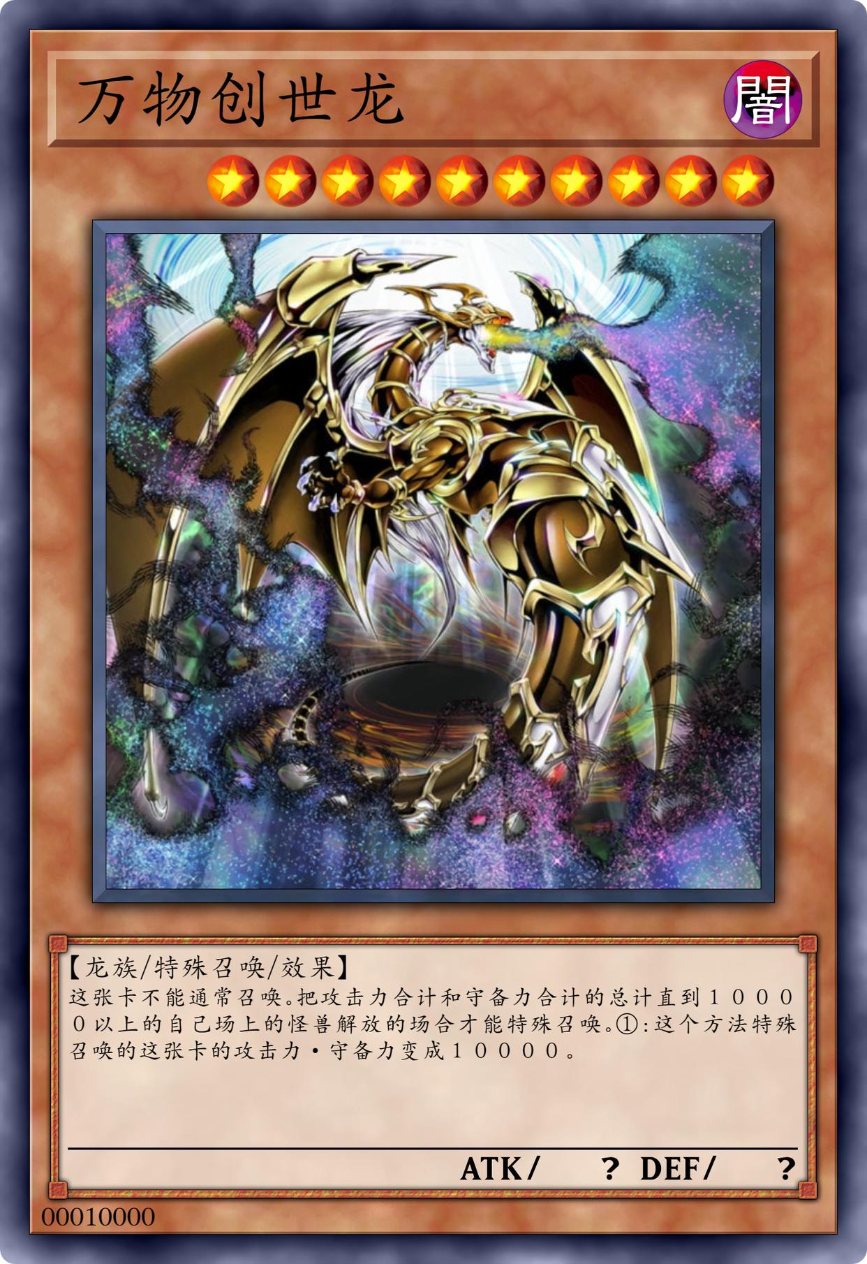 同样是靠着效果增幅让攻击力直接来到10000点数值的,就是这只万物创世龙怪兽。