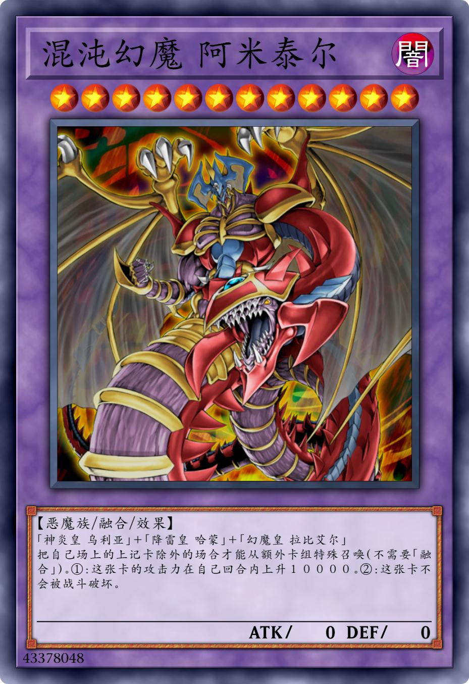 而在不需要装备卡的情况下,直接靠效果就能攻击力过万的怪兽,首推还得是三幻魔融合体,混沌幻魔 阿米泰尔这只怪兽。