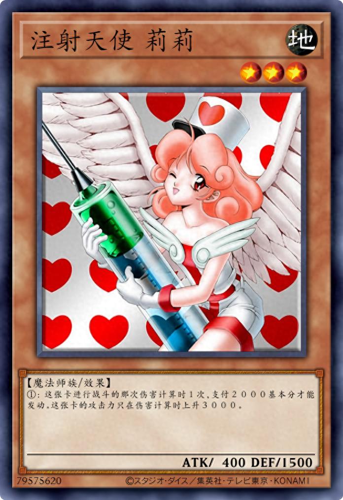 例如,需要支付2000点生命值才能触发效果的注射天使莉莉,这只怪兽表面上看还很可爱,而且攻击力400点数值,三颗星的等级,怎么看都没有威胁性的样子。