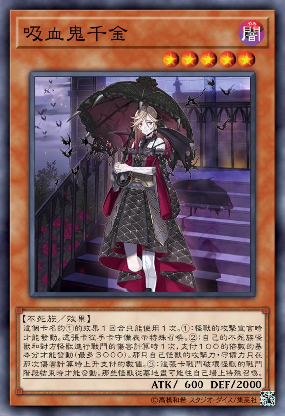 吸血鬼千金的这个效果触发条件,支付生命值的上限是3000点。所以,理论上来说,其效果作用的不死族怪兽,一次性也能提升3000点的攻击力跟防御力数值。