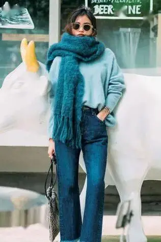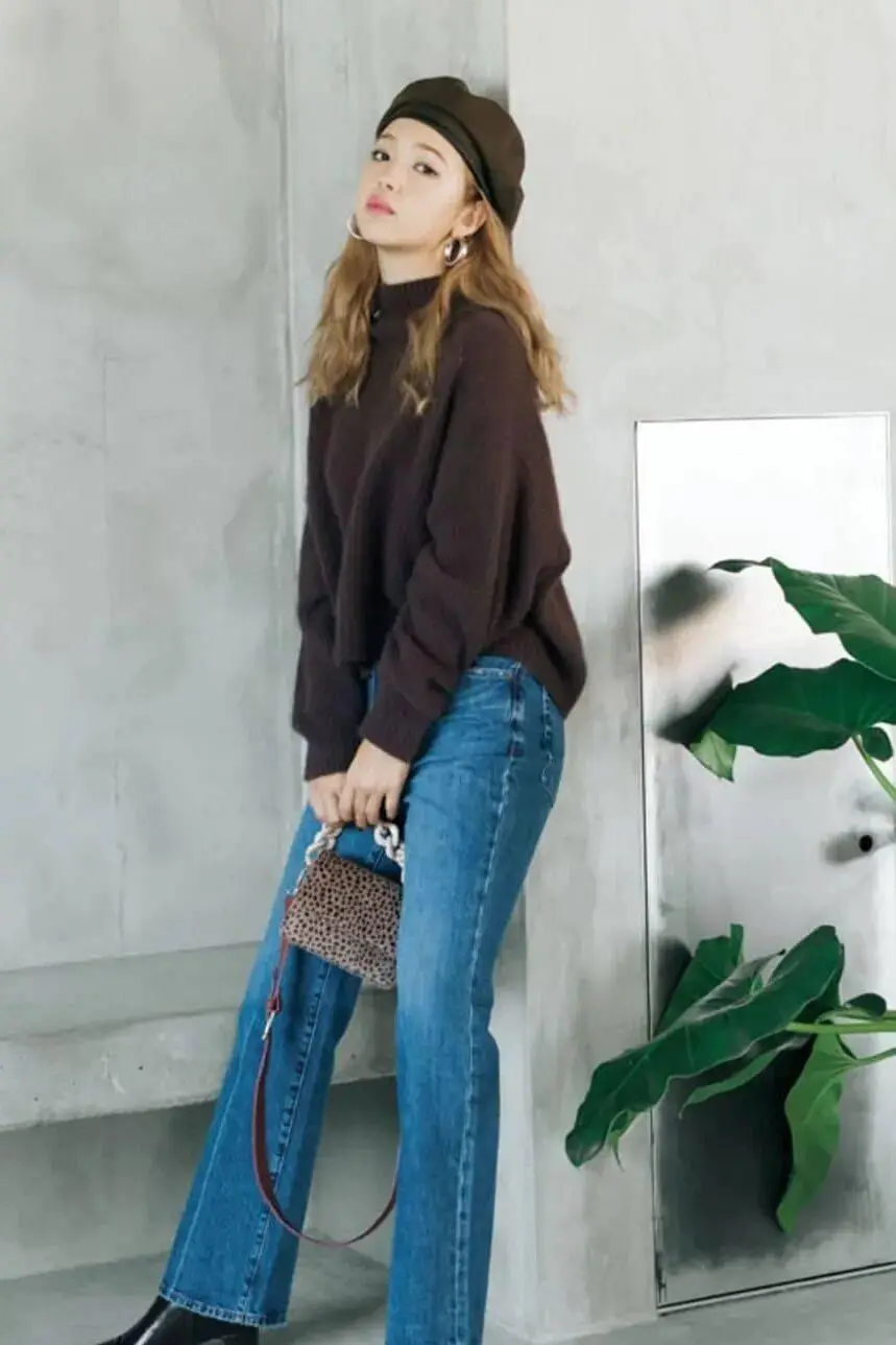 牛仔阔腿裤是四季百搭利器,搭配大毛衣能增添酷帅洒脱的腔调。它能实现多种混搭,除简约风毛衣外,大胆尝试靓丽设计款毛衣,能给人眼前一亮的新鲜感,助你轻松脱颖而出。