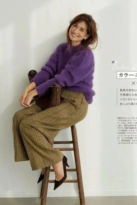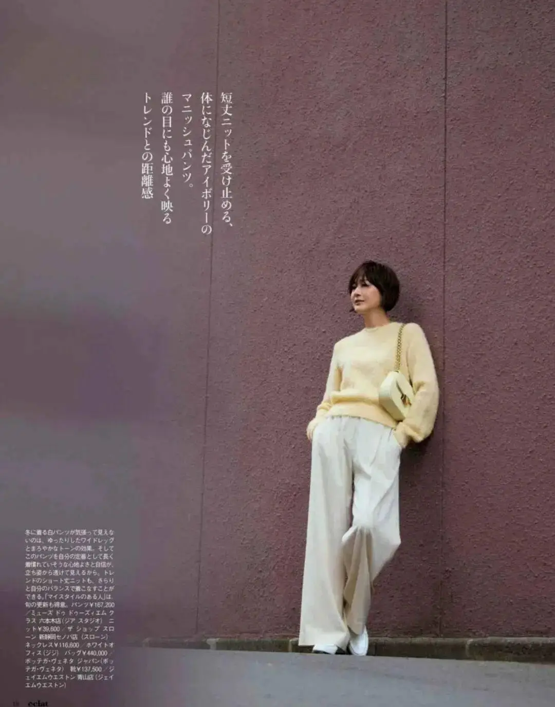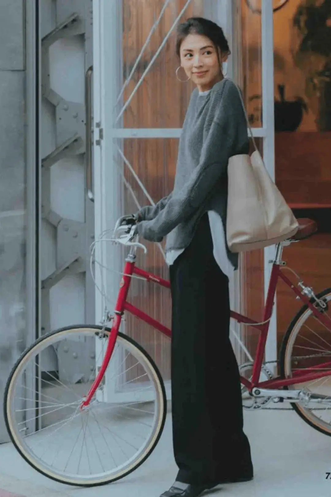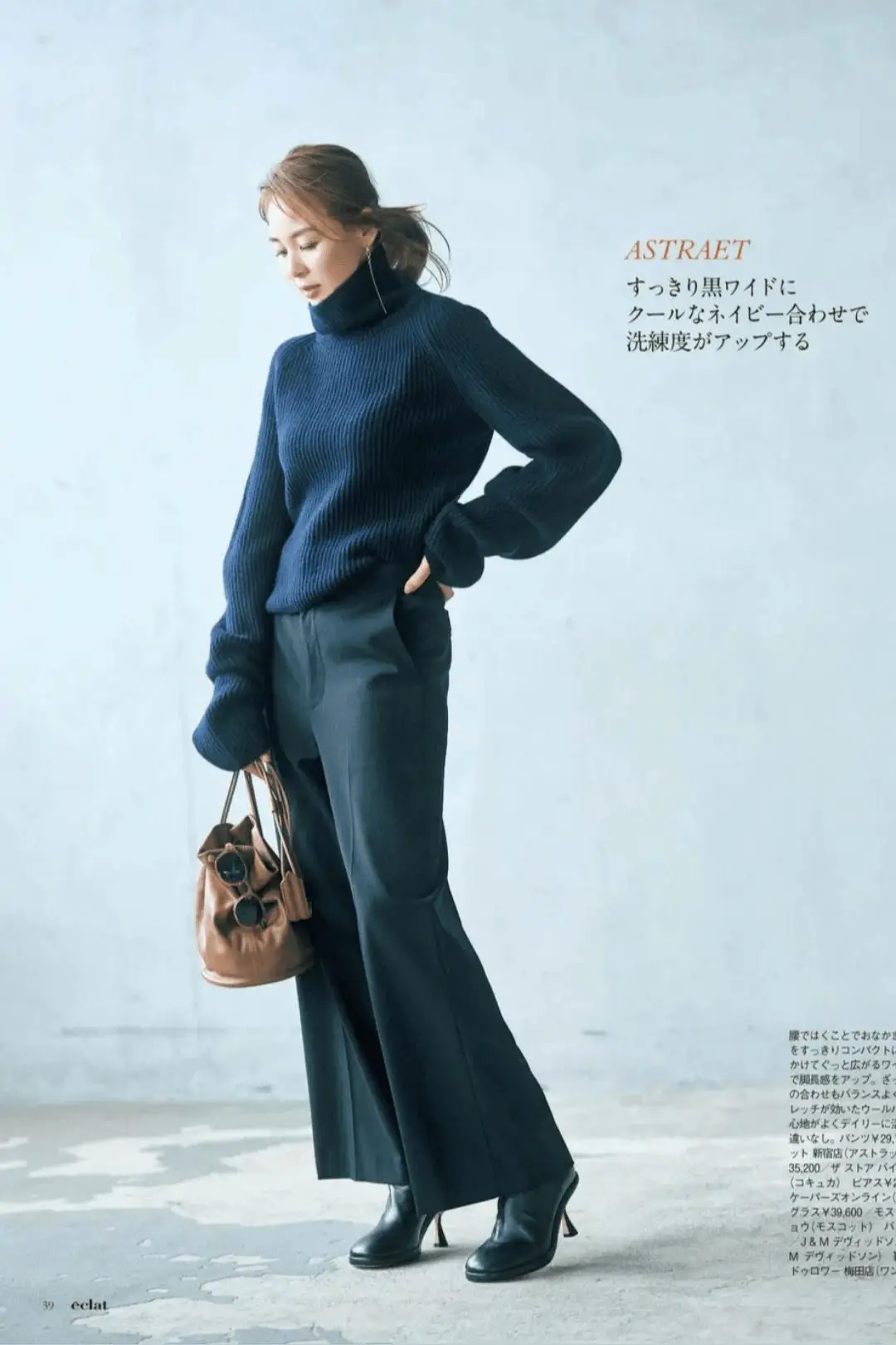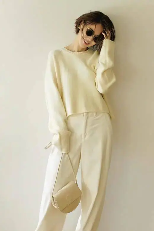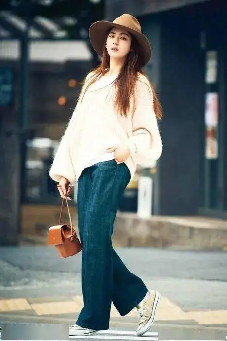 想要穿出温柔慵懒感又不显臃肿,阔腿裤的裤型选择很关键。建议挑选裤腿不过于肥大的款式,搭配任何毛衣都能在视觉上更显瘦、显腿长。