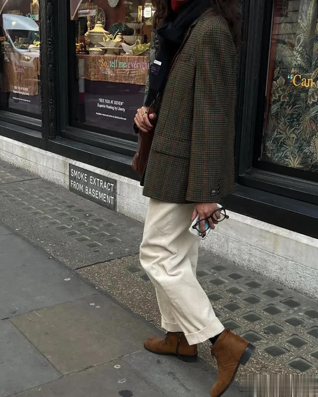 日常职场通勤场合较多的矮个子姐妹,秋冬可以穿格纹西装,复古的格纹元素可以打破西装固有的沉闷感,又能保持职场穿搭的利落得体,干练又时髦,经典又有秋冬的氛围感。▼
