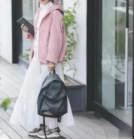 冲锋衣外套还可以搭配裙子,内搭同色系视觉延伸就很显高,一整套休闲又优雅,随性又气质,时尚十足。▼