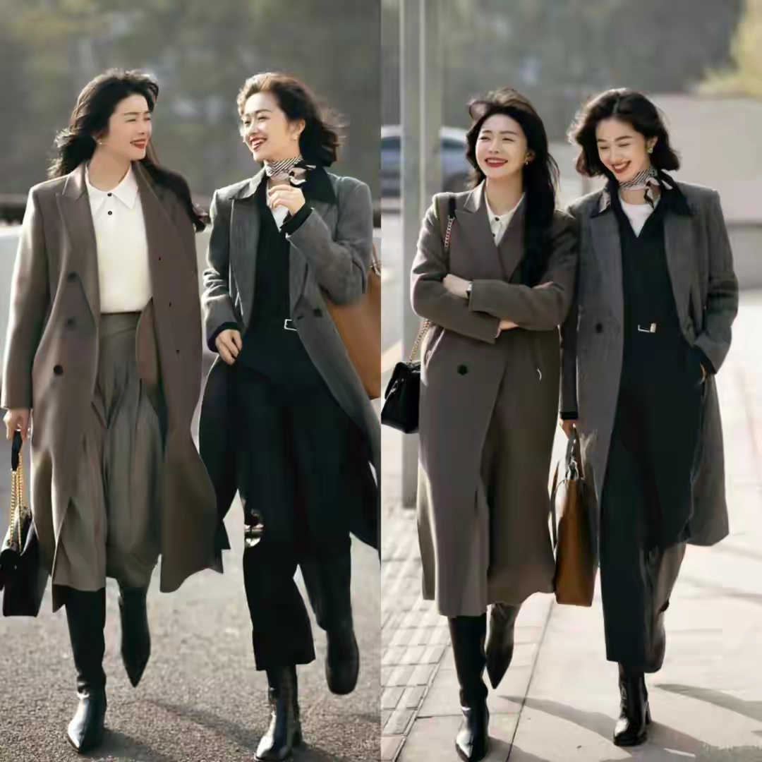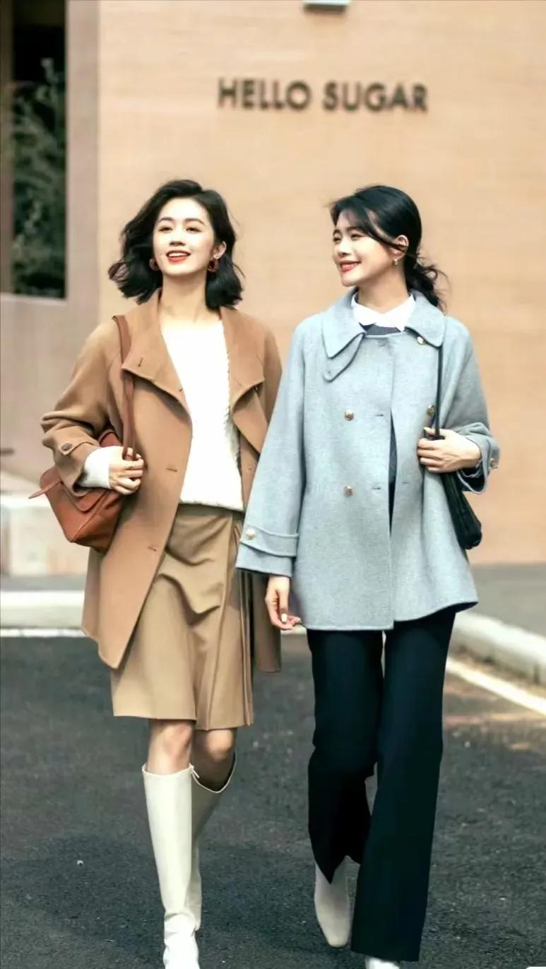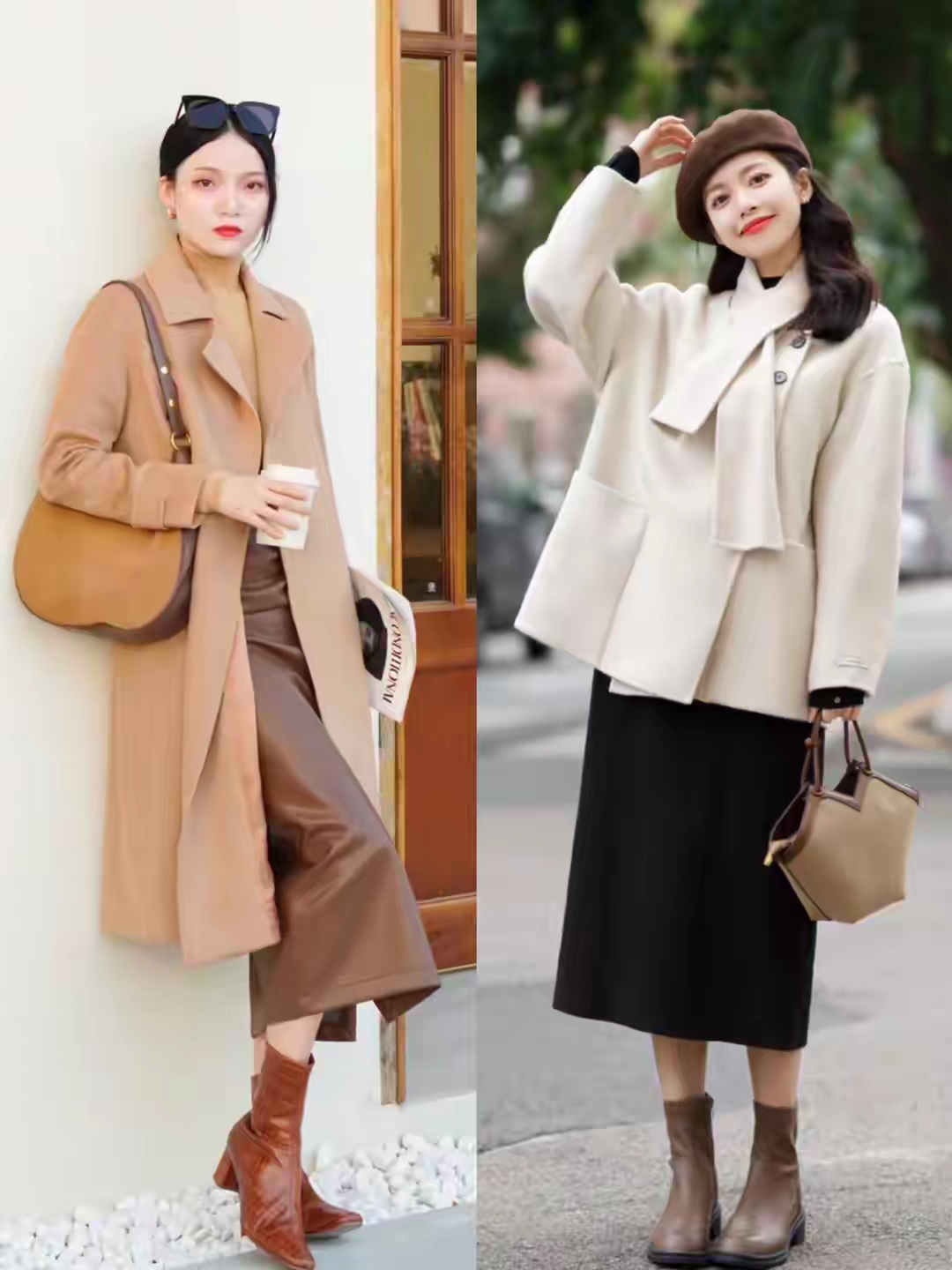 很多姐妹喜欢跟着时尚博主或女明星穿搭,但其实她们选的大多是基础款——没有繁杂设计,却能穿出高级感。比如黑色大衣内搭黑色针织衫和半身裙,脚踩白色粗跟短靴,简约又大气;经典驼色大衣配深咖色直筒半身裙加黑色短靴,通勤又时髦。