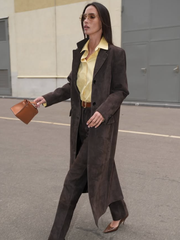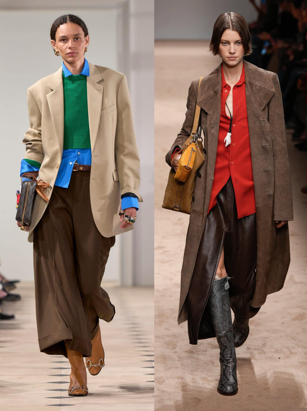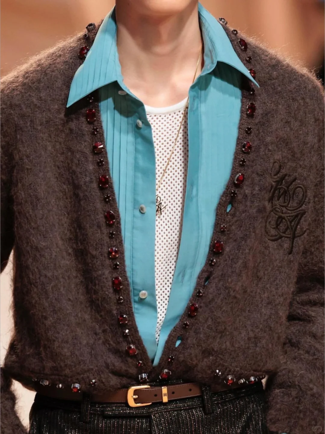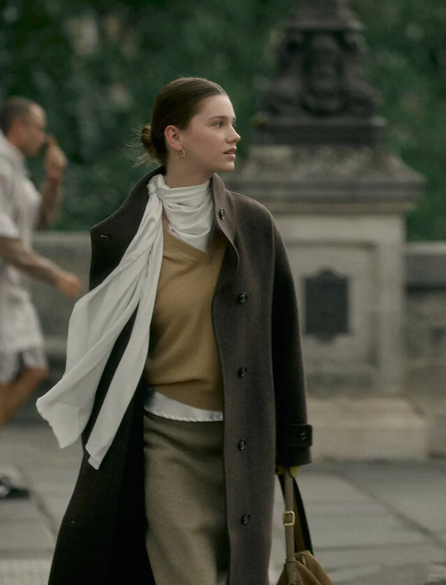 相较于毛衣的柔软,衬衫有型有骨,能在厚重外套中维持利落体面,避免臃肿。它的色彩通常只露出领口、门襟与袖口,这种“惊鸿一瞥”的呈现,让表达更显矜贵高级。